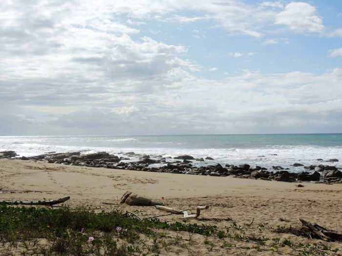 Seaside entertaining in Manaba Beach with open-plan living, high ceilings, sea-facing bedrooms, private flatlet and pool with built-in braai. Three beds, two baths, double garage.