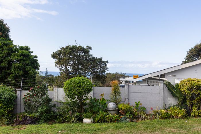 Three bedrooms, two bathrooms, double garage, on 1197 m² land in Uvongo. Close to beach and amenities.