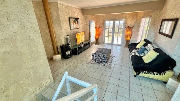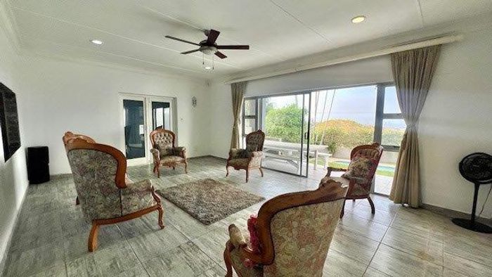 Enjoy tranquil Uvongo hillside living with distant sea views, landscaped gardens, pool and braai — ideal for entertaining or B&B use. Rainwater harvesting, workshop, two garages.