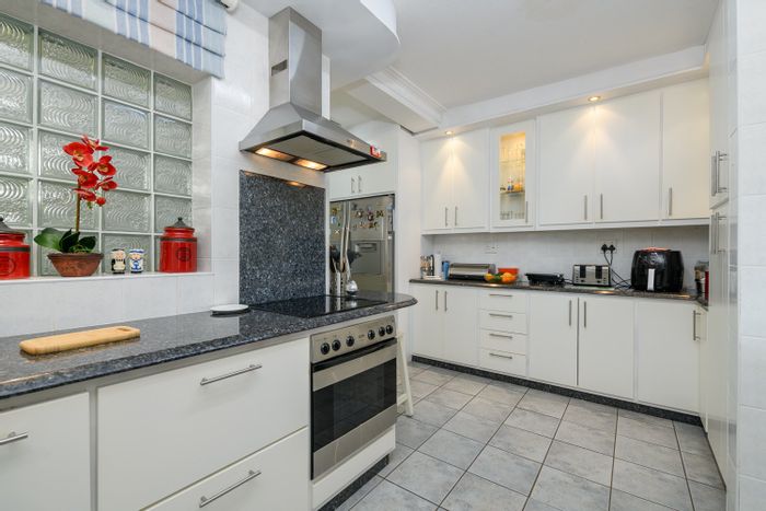 Coastal family living just 700m from the shore with a large yard and outdoor braai; modern kitchen, income-generating two-bedroom flat and bachelor unit — five beds, four baths, three garages.