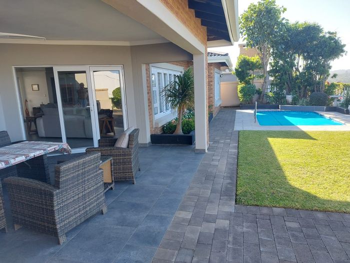 Coastal entertainer's retreat in Le Shac estate, 2 km from Shelly Beach amenities, with 180° breaker views, heated pool, private manicured garden and three en-suite bedrooms.