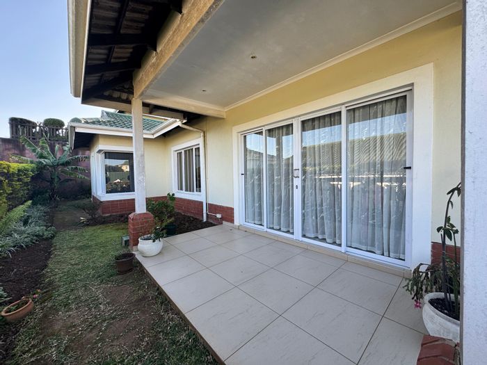 Relaxed family living in the heart of Mount Edgecombe, close to amenities, with covered patio and private garden; three bedrooms, two bathrooms, double garage plus extra parking, 24-hour security.
