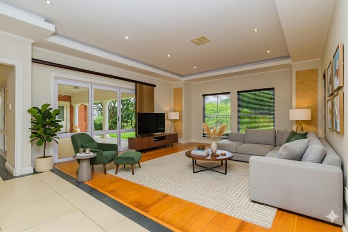 Entertain effortlessly in Mount Edgecombe's elevated setting with sweeping fairway and estate views, designer open-plan kitchen, sparkling pool and braai — four bedrooms, three baths, double garage.