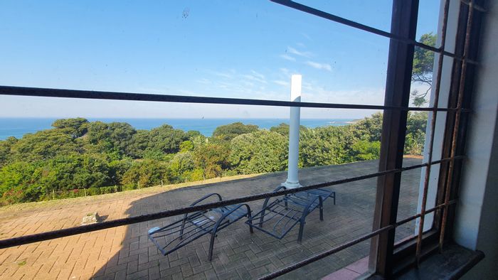 Seaside living in Umtentweni with panoramic ocean views, verandah and built-in braai overlooking pool — versatile layout with two potential flatlets, five bedrooms and four bathrooms.