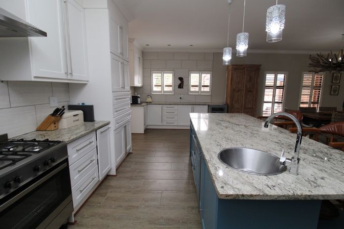 Embrace serene bushveld living in Verloren Estate, with panoramic Waterberg and Kranskop views, a heated swimming pool for year-round enjoyment, and four bedrooms, three bathrooms.