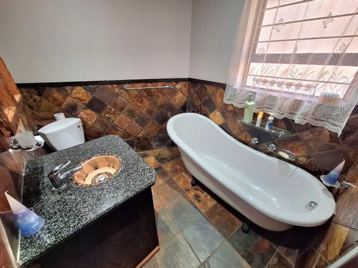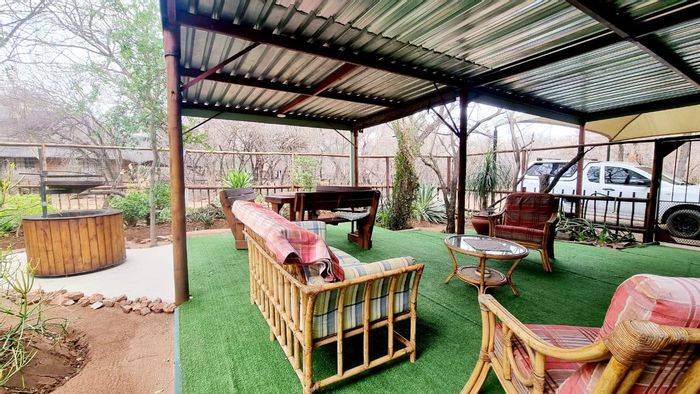 Bushveld living in Leeupoort with a covered built-in braai for effortless outdoor entertaining; includes a one-bedroom flatlet, four bedrooms and three bathrooms.