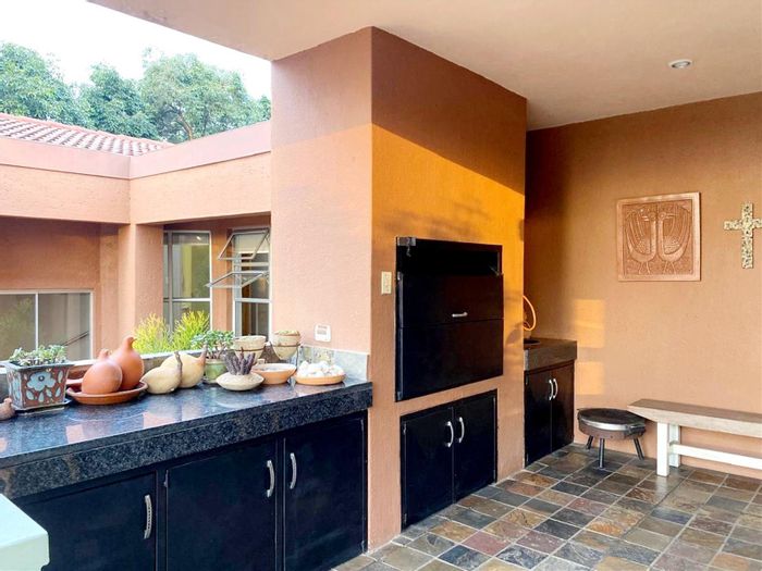 Alfresco family living in Steiltes, Nelspruit, Mpumalanga — leafy front garden, pool and boma with built-in braai, sunny patio; three bedrooms, double garage.