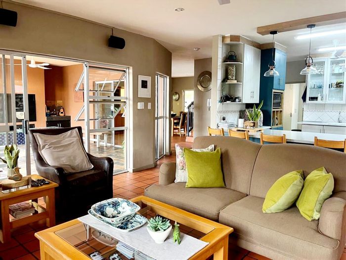 Entertainer's retreat in Tussenberge Estate, Steiltes, with open-plan living flowing to an enclosed patio and built-in braai, enjoying elevated views. Three bedrooms, two baths, double garage.