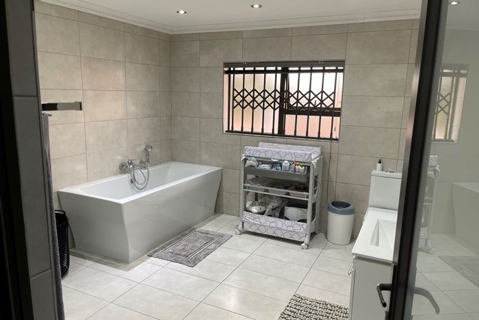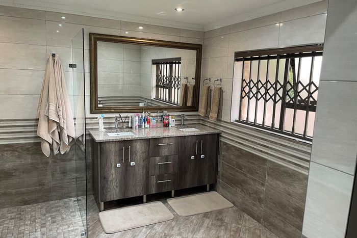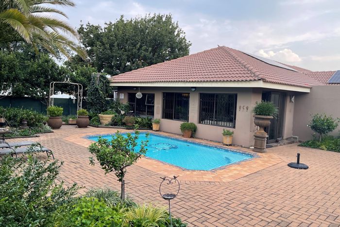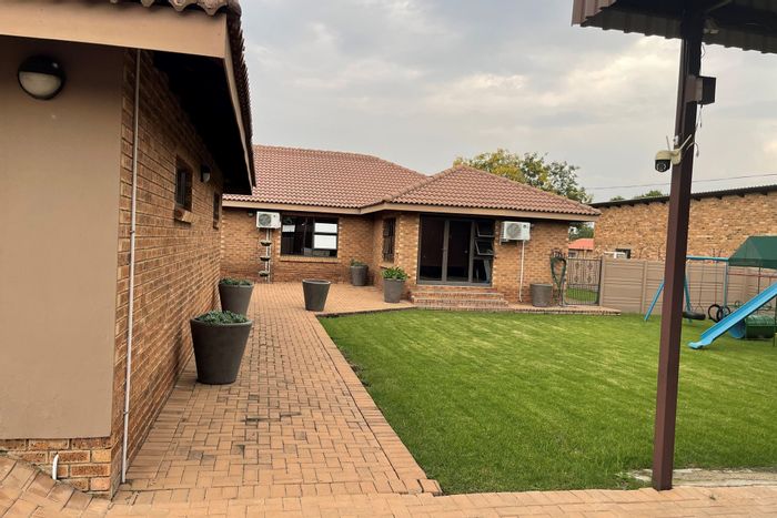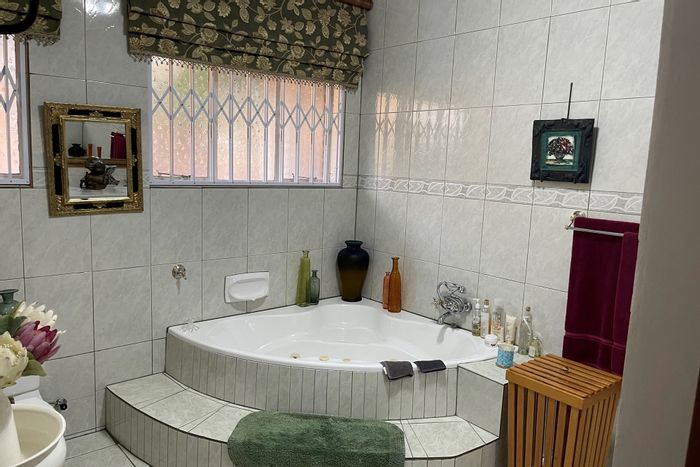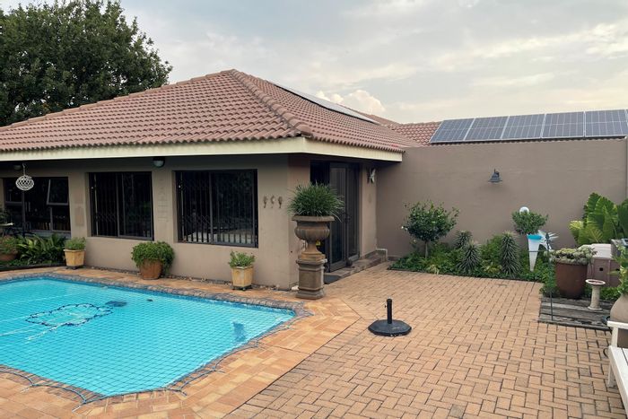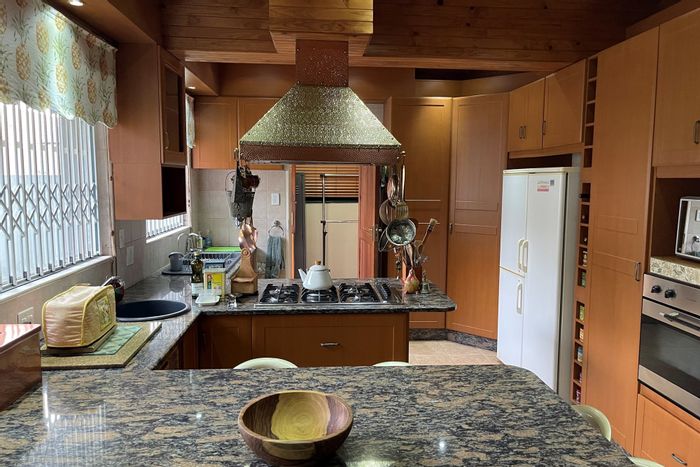 Spacious family entertainer in quiet Kinross, with indoor braai opening to a lush garden, three living areas, scullery, three automated garages and carports — five beds, three baths.