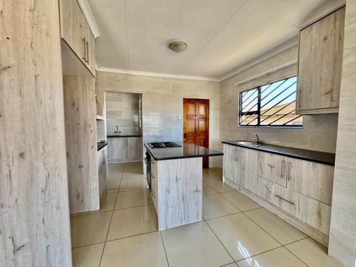 Easy suburban living in Secunda with shops and schools nearby, a modern gas kitchen, en-suite main bedroom, space for a small garden and single garage.