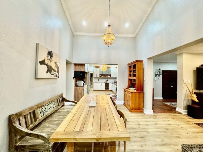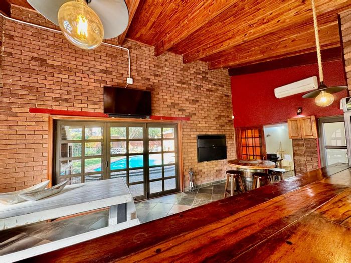 Entertainer’s dream in Secunda: open-plan living with exposed-beam lighting, designer Caesarstone kitchen, pool and boma, plus a sunlit flatlet for rental income. 3 beds, 2 baths, 4 parking.