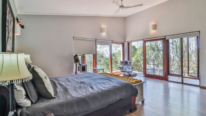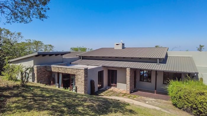 Elevated lowveld living on Pamushana Estate overlooking Kaapschehoop mountains, with indigenous bush, abundant birdlife, pool and woodland viewing deck — five en suite bedrooms and triple garage.