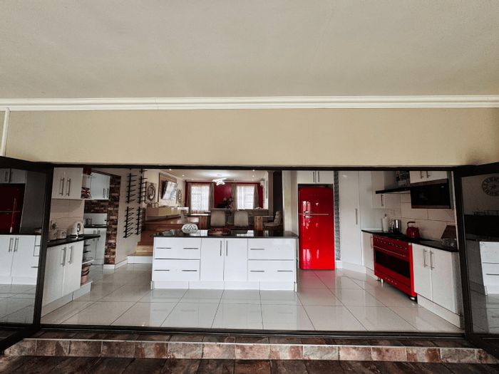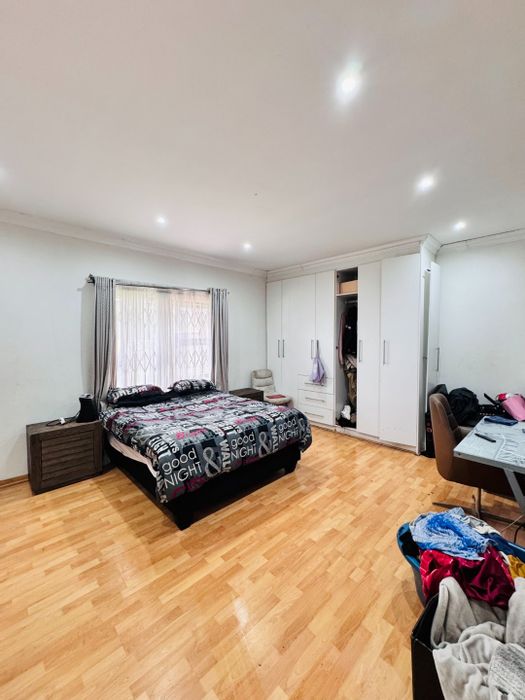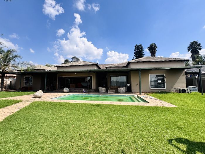 4-bedroom, 4-bathroom home with 3-car garage on 1442 m², featuring pool, braai area, and solar panels.