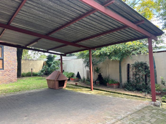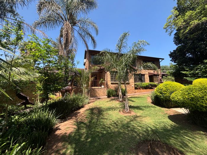 Peaceful Witbank suburb living with expansive landscaped yard and sunlit jacuzzi room under a glass ceiling; five bedrooms, four bathrooms and garage for up to five cars.