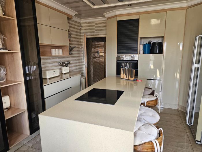 Flexible dual-living property in a family-friendly suburban setting, ideal for multigenerational living or rental income. Covered patio with built-in braai, child-friendly garden, five beds, four baths, double garage.