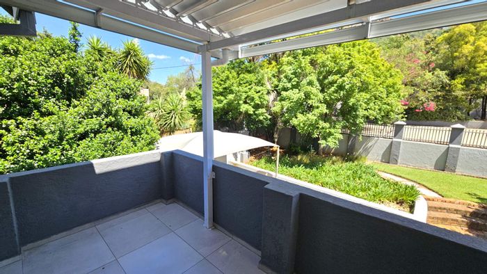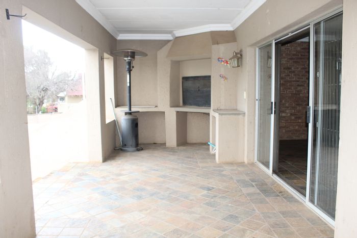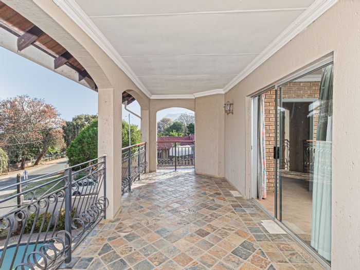 Resort-style living in leafy Schoemansville, minutes from Hartbeespoort Dam — corner double-storey with dual entrances, pool and covered braai patio, upstairs master balcony; 4 beds, 3 baths, ample parking.