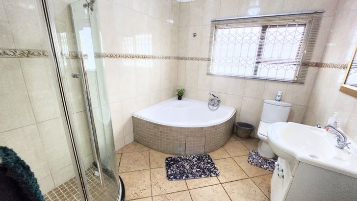 4 bedroom, 2.5 bathroom house with flatlet, double garages, pool on 1419 m² in Flamwood, Klerksdorp.