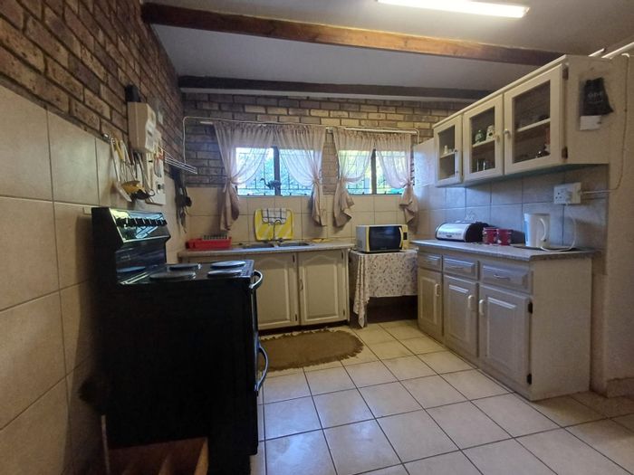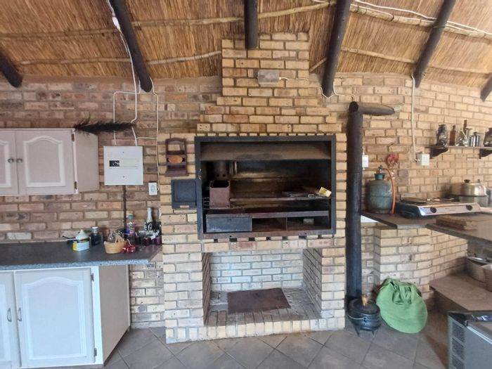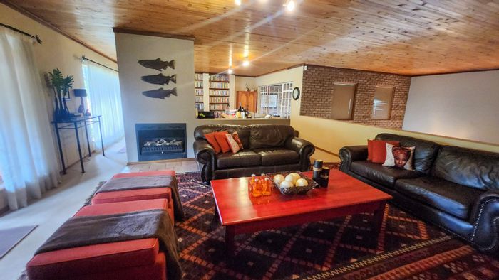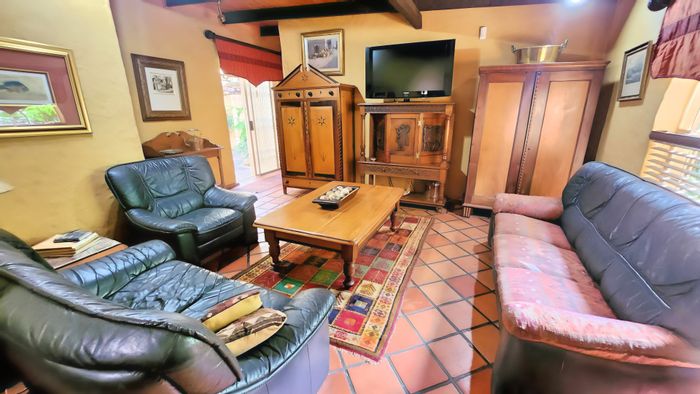 Entertainer’s family estate on 3,436 m² with covered braai area, large pool, study/games room and two outside rooms; borehole, irrigation and solar geyser. 5 beds, 4 baths.