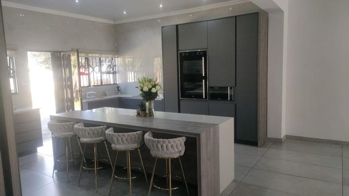 Entertain effortlessly in East-End Rustenburg with expansive indoor-outdoor living, large garden and modern kitchen; four en-suite bedrooms, borehole, alarm and electric fencing.