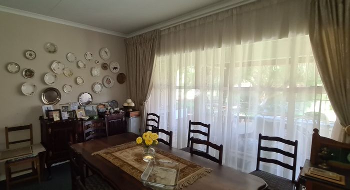 Sun-drenched family home in Stilfontein Extension 4 with open-plan living flowing to a much-loved entertainment area, large garden with water feature and covered rear parking. Five bedrooms.