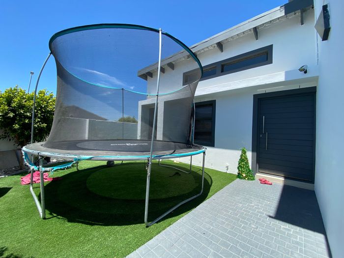 Relaxed family living steps from Blouberg beachfront and top schools, in a secure access-controlled estate — private pet-friendly garden with pool and built-in braai, four en-suites, double garage.
