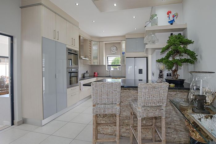 Entertainer's family home in prime Sandown, Cape Town — elegant finishes, gourmet kitchen and sheltered wind-free patio with built-in braai; four bedrooms, four bathrooms and double garage.