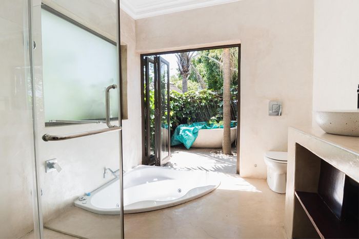 Retreat-style entertainer’s home with indoor braai and bar flowing to deck and poolside lapa, set on 1,400m² near city conveniences; three bedrooms, three garages.