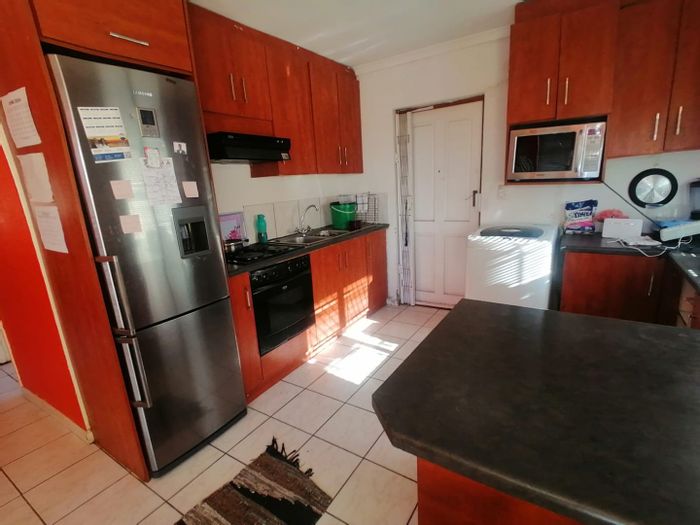 Three-bedroom home in secure complex with fitted kitchen, built-in cupboards, and paved yard. Viewing by appointment only.