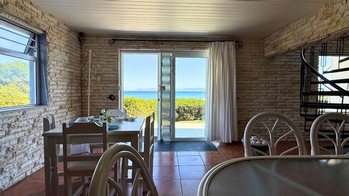 Coastal family retreat in peaceful Kleinbaai, steps from the harbour and marine tours; private flatlet and enclosed braai room, sea views, four bedrooms and double garage.