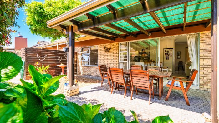 Relaxed Garden Route living in Van der Stel Park, steps from Virgin Active and padel courts; thatched double‑volume home with indoor braai, curated garden and 3 beds, 2 baths, garage.