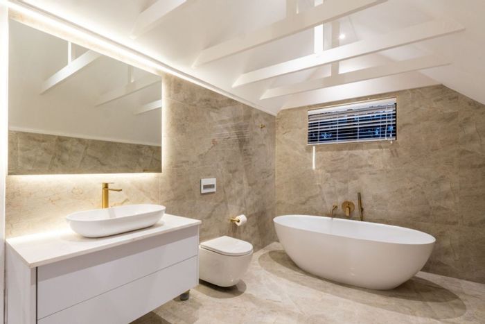 Escape to peaceful cul-de-sac living in sought-after Fernridge, with a bird-filled forest garden and gentle stream, open-plan entertaining, braai room, five bedrooms, three bathrooms, and double garage.