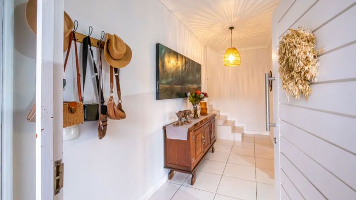 Relaxed family living in Kraaibosch Manor Estate, minutes from shops and schools, with a private garden and Outeniqua mountain views — includes five bedrooms, five bathrooms, double garage.