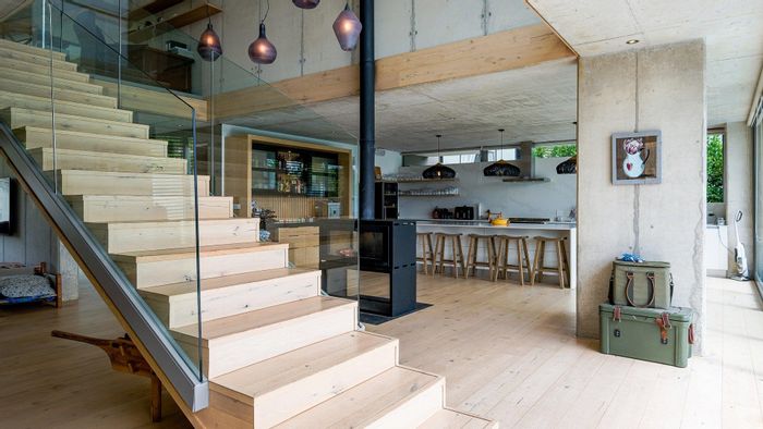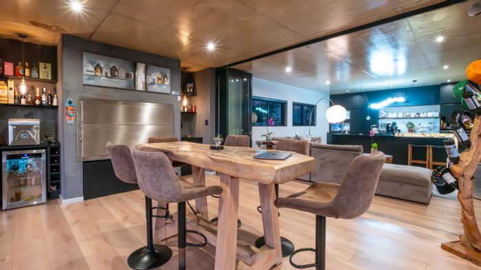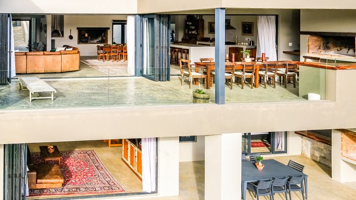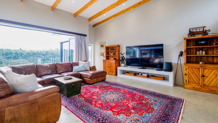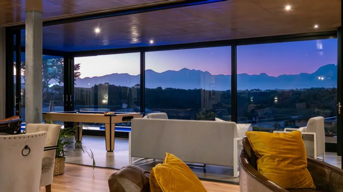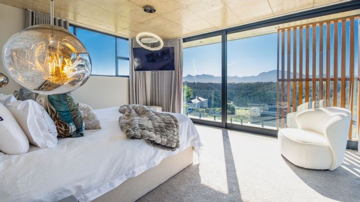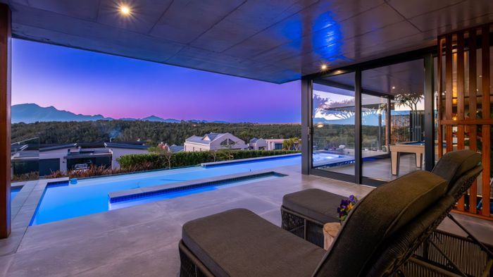 Entertain effortlessly with panoramic Outeniqua Mountain views and poolside living in this modern off-grid home, featuring a gourmet kitchen, four ensuite bedrooms, study and four-car automated garage.
