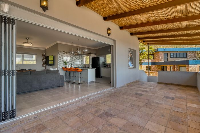 Relaxed coastal living in elevated Gordon Heights, Gordons Bay — airy open-plan interiors, balcony with Helderberg Mountains and False Bay views; four bedrooms, three bathrooms, double garage.