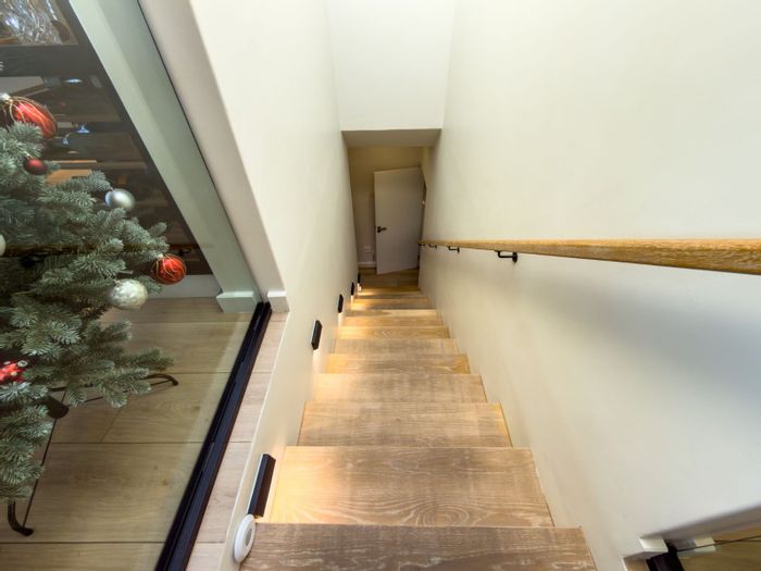 Coastal living steps from the Blue Flag beach, restaurants and attractions, with panoramic sea views and a private lift connecting two self-contained levels — four beds, four baths, single garage.