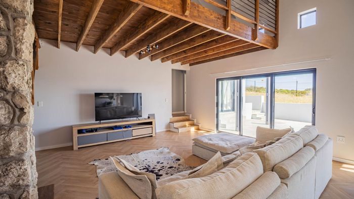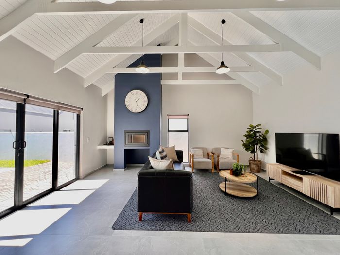 Effortless coastal living in Langebaan’s coveted Oyster Catcher, minutes from the beach and mall — open-plan home with exposed trusses, chef’s marble island, private splash pool and built-in braai.