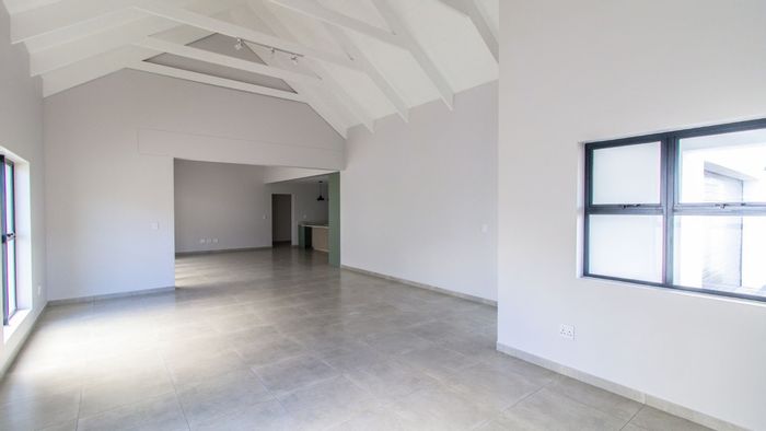 Secure, tranquil Wildflower Estate living with light-filled open-plan spaces and a covered pergola braai patio — ideal lock-up-and-go. Two bedrooms (main en-suite), two bathrooms, single garage.