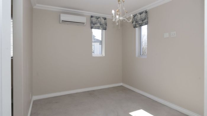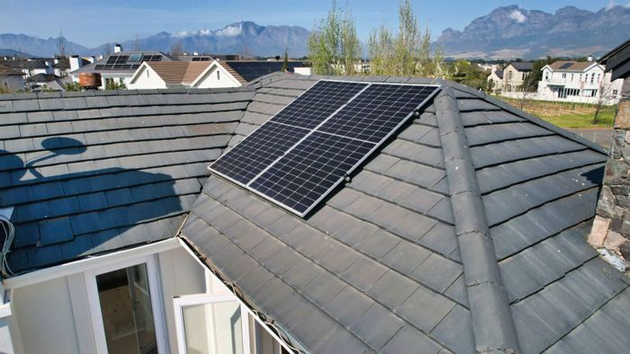 Easy, low-maintenance living in Mountain Ridge Estate, Paarl — steps from the mall and public transport. Open-plan lounge/kitchen, solar panels, two bedrooms, one bathroom and parking for two.