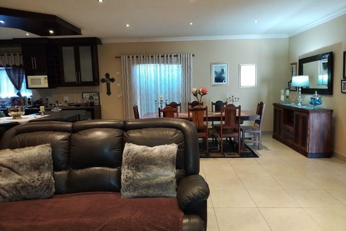 Secure coastal living in Welgedaan Estate with coastal views, open trusses and stacker doors to a braai area — pet-friendly 3-bedroom, 2-bath home with double garage.