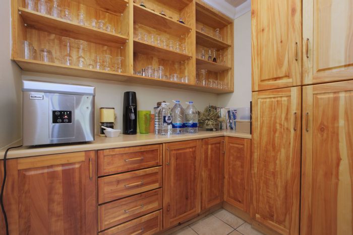 Relaxed lakeside living in secure Lakeview Estates, steps from Groenvlei Lake — open-plan entertaining flows to a glass-enclosed patio with built-in braai and a private garden.