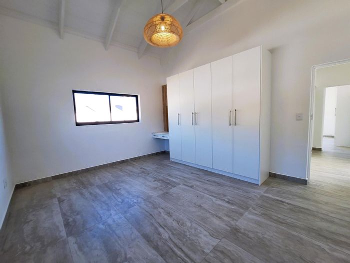 Coastal retreat in Britannia Beach Estate, St Helena Bay — easy low-maintenance seaside living with indoor braai, exposed beams, modern island kitchen; two bedrooms, two bathrooms, automated double garage.