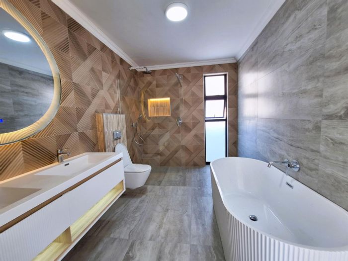 Enjoy coastal golf-estate living in Shelley Point, St Helena Bay — bright open-plan interiors, modern kitchen and north-facing covered patio with built-in braai; four en-suite bedrooms and double garage.