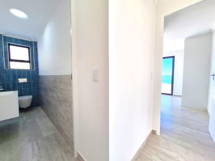 Wake up to uninterrupted sea views and sunset evenings in this beachfront home, featuring indoor-outdoor entertaining with a built-in braai balcony, three bedrooms, 2.5 bathrooms, double garage.