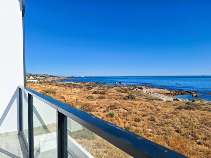 Wake to coastal breezes and panoramic Atlantic views in Kleinkoornhuis, St Helena Bay — near the beach, with a covered patio and built-in braai; three beds, two baths, double garage.