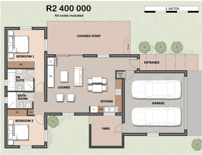 Embrace relaxed West Coast living in St Helena Bay with contemporary finishes and an indoor braai room opening to a paved patio; two bedrooms, two bathrooms and double garage.