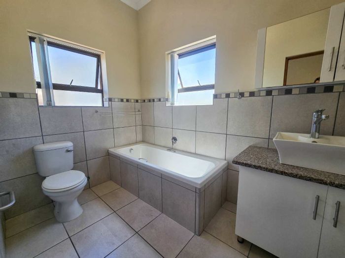Relaxed coastal living in a secure Stilbaai complex, minutes from beaches and shops, with a covered stoep and built-in braai. Three bedrooms, two bathrooms, double garage.