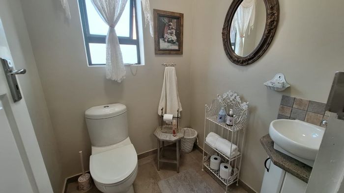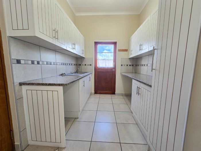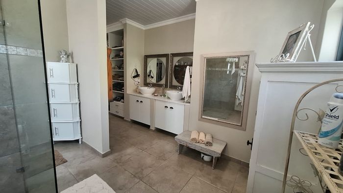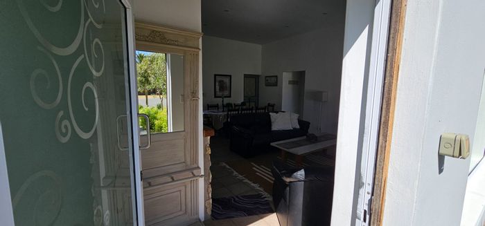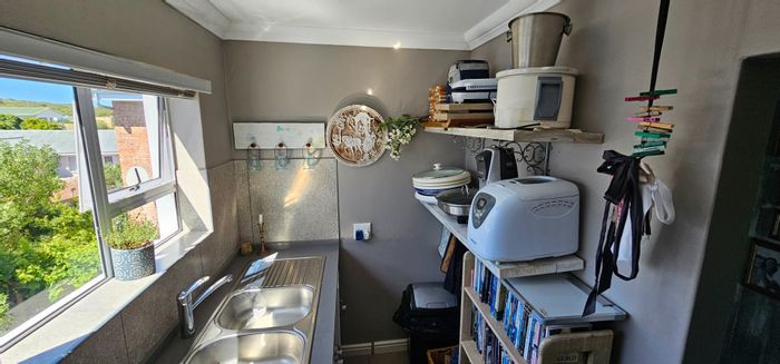 Versatile family living in peaceful Stilbaai with separate entrances for dual kitchens and a bachelor unit, fitted stair lift and well-kept garden; five bedrooms, five bathrooms and single garage.