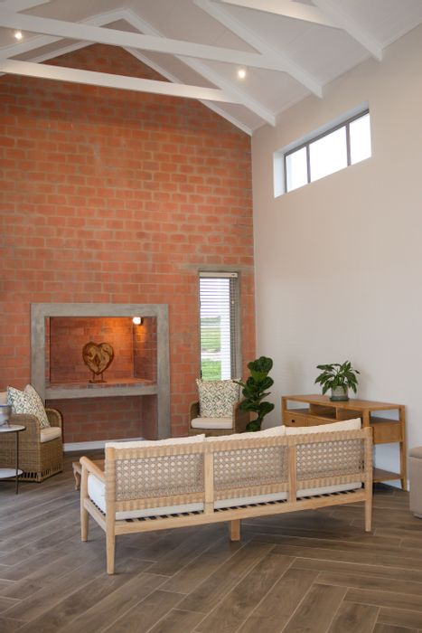 Coastal family living in Stilbaai’s Fleur De Vie estate on the Garden Route, pet-friendly with modern open-plan kitchen, upstairs private bedrooms and double garage plus carport.