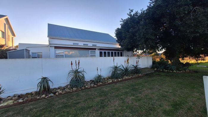 Stroll to the Goukou River from Little England, Stilbaai — sunlit open-plan living and an expansive backyard ready for a pool or garden. Five bedrooms, two baths, double garage.