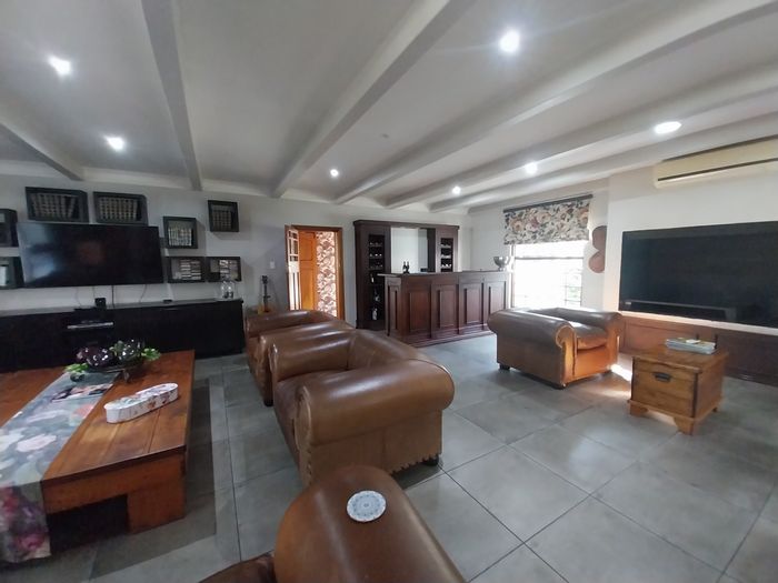 Entertainer's paradise in a peaceful residential enclave, combining bright open-plan living with a chef’s kitchen and outdoor entertainment area with braai and pool — five beds, three baths, six covered parking.